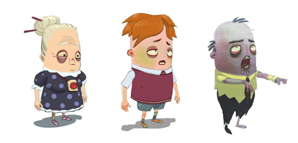 Koncepcyjne grafiki postaci z gry.