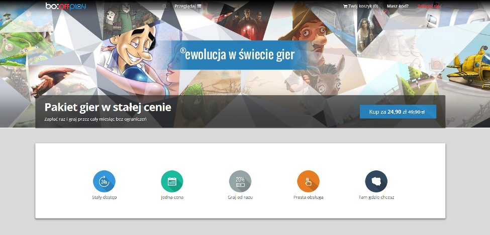 Wykupując dostęp do platformy BoxOff Play na miesiąc dostaje się możliwość zagrania we wszystkie wchodzące w jej skład produkcje - bez limitu czasowego. Do najciekawszych gier w repozytorium należą zdecydowanie te z serii FlatOut czy Call of Juarez. W palecie znalazło się również miejsce na chociażby Disciples 2: Mroczne Proroctwo. Co ciekawe, platforma dzięki zastosowaniu technologii chmurowej nie wymaga od użytkownika instalacji żadnej z oferowanych przez nią gier - nie trzeba ich nawet w pełni pobierać, by móc cieszyć się z gry.